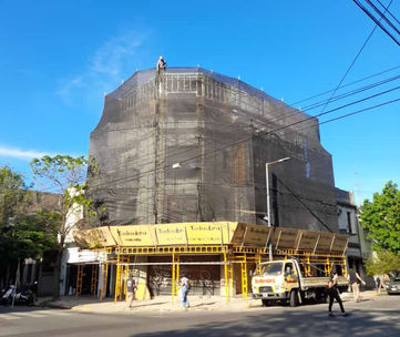 En TODOOBRA, llevamos más de medio siglo proporcionando servicios de montaje de bandejas de protección peatonal y andamiajes para trabajos en fachadas de edificios, casas, locales comerciales, entre otros. Nuestras estructuras están debidamente certificadas y son adecuadas para el uso con silletas, andamios eléctricos, balancines, y para llevar a cabo una diversidad de tareas, tales como limpieza y reparaciones varias en fachadas o en cualquier superficie que requiera el uso de andamiaje.